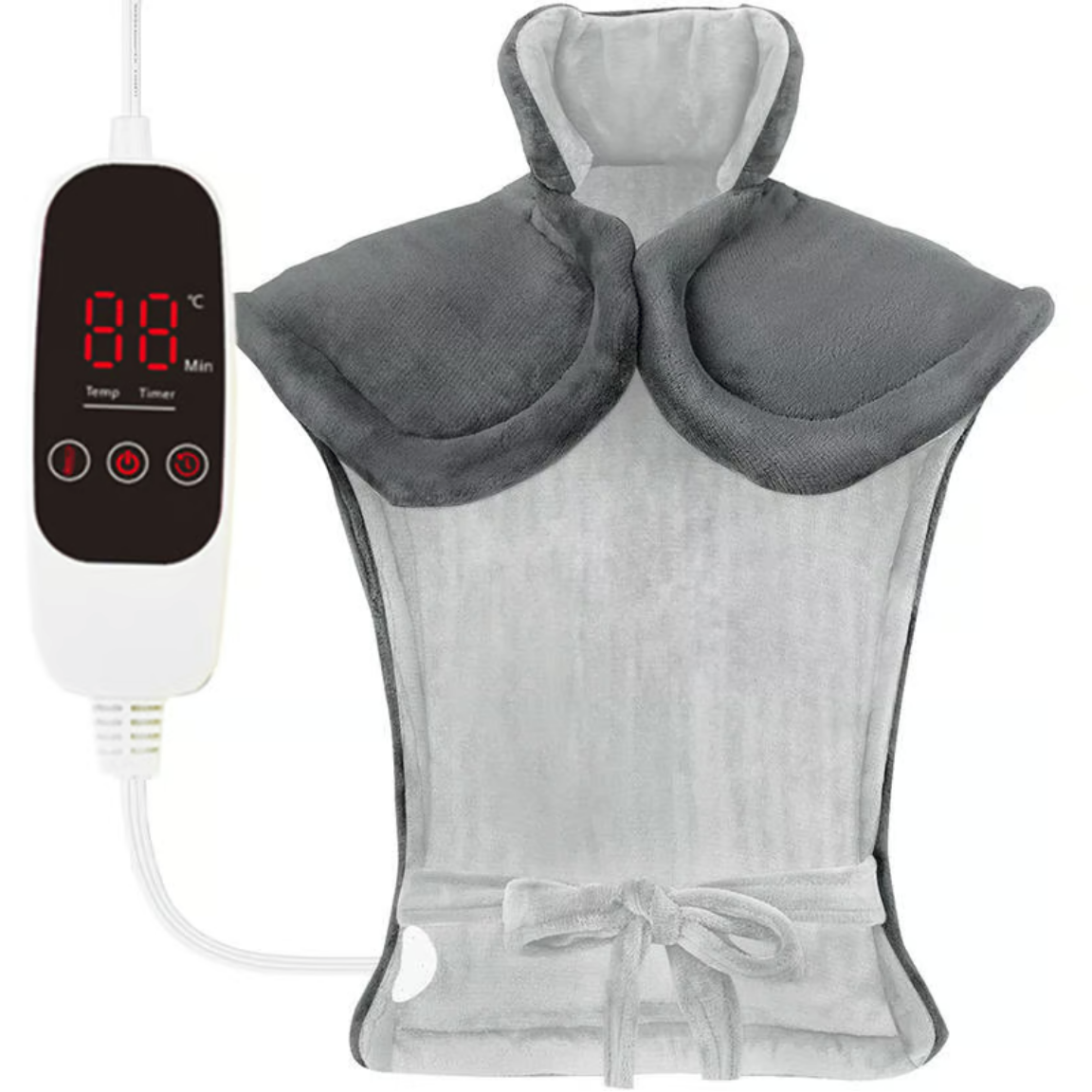 Large Wearable Heating Pad (37''x24''): This electric pad fits over your back and neck like a vest, with weighted shoulders, a front snap, and waist straps for a snug fit.Keep your entire back very warm in winter to avoid the physical discomfort caused by changing seasons.